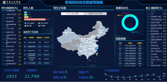 建设师生健康申报和出入校园管理平台,持续抓紧抓实抓细各项防控举措,深化校园码、健康码以及核酸检测、疫苗接种等公共数据的运用,探索高校人员智控系统建设,并结合大数据技术,实现返校复课后校园防控常态化管理和精准化智控。以数字化技术和手段创新校园安全科学精密智控,加强疫情联防联控,提升了校园数字化管理能力和服务水平。