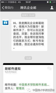请在“设置”→“提醒服务”中进行微信的绑定,后续有新的邮件可收到微信提醒,并可直接进行收、发邮件,使用非常方便。