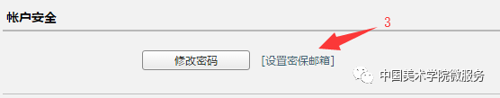 (2)日常使用请通过依次点击邮箱界面的“设置”→“帐户”→“帐户安全”进行“密码修改”,并设置好“密保邮箱”,绑定常用的个人邮箱(推荐个人QQ邮箱),便于后期密码的找回。