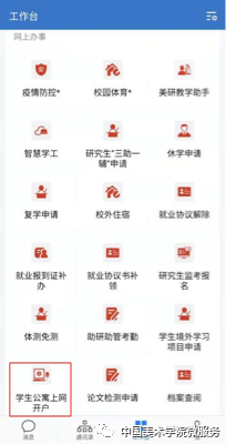 还未开通宿舍网络的同学需先在办事大厅申请学生公寓上网开户,审核通过后可在微信公众号“中国美术学院微服务”自助充值费用。