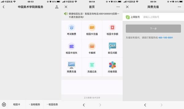学生网络缴费:关注公众号“中国美术学院微服务”上可进行线上充值